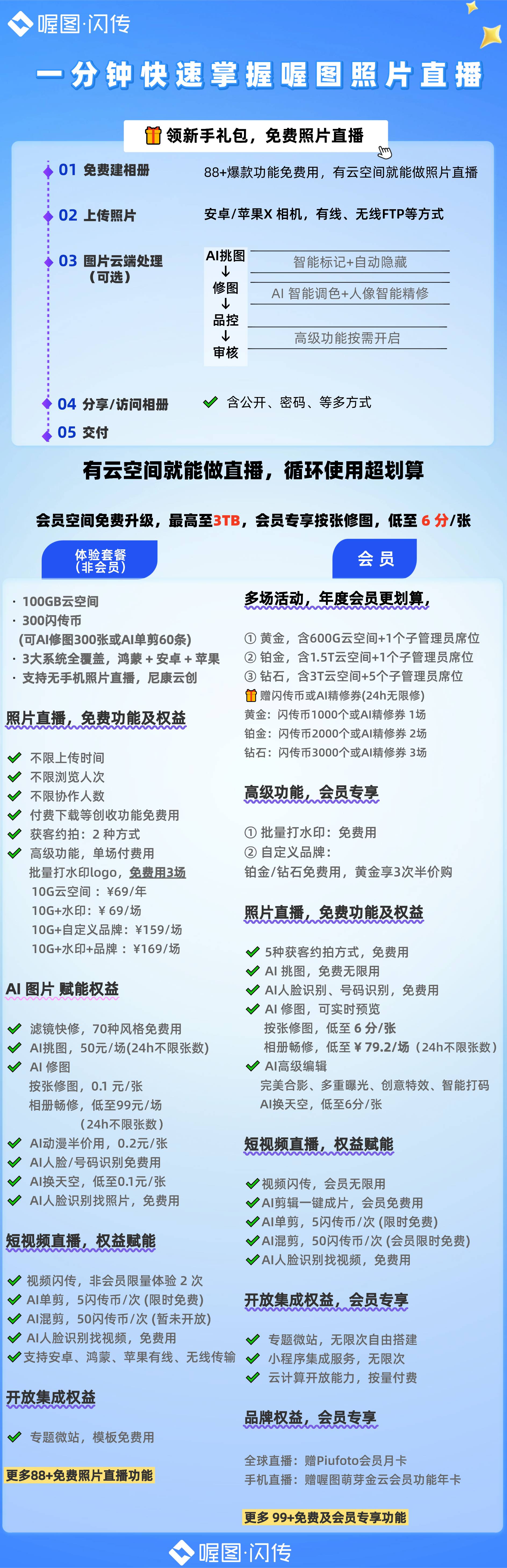 图片直播是一种通过即时拍摄,实现即时共享图片的直播模式。它通过互联网技术和智能硬件技术的支持,从摄影师按下快门起,实现照片0.2秒上传云端,快速分享。