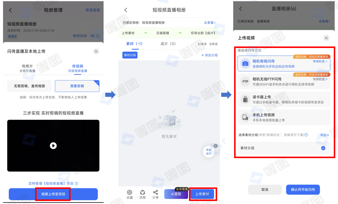 新版喔图APP的短视频直播,需要剪辑的实时上传模式新增了手机上传本地视频。
